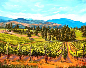 I enjoy painting scenes of this beautiful Okanagan Valley. I paint in acrylics and mostly from photographs or sketches I’ve done, many of them of vineyards, cliffs, and the valley lakes. I like to enhance the colours and make the sky and the lakes a bit bluer, the cliff shadows a bit more purple, and the vineyards a brighter yellow/green than they really are. I want viewers to enjoy looking at my paintings and recognize the scenes that may bring happy memories to them.